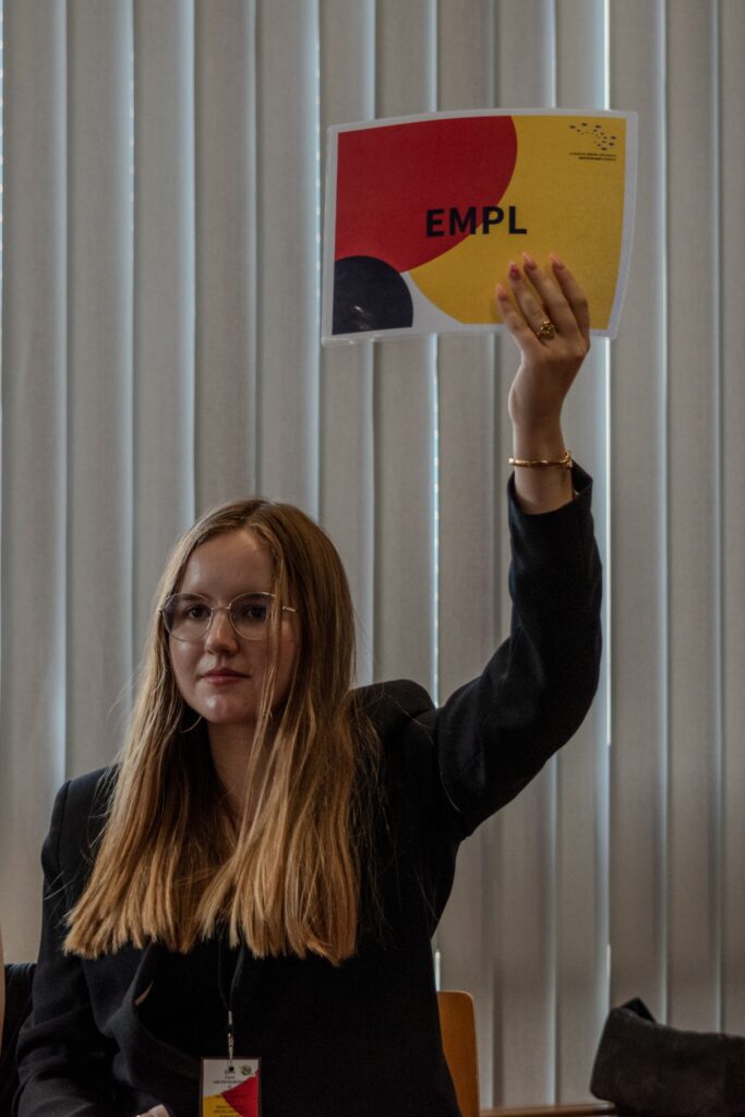 During committee work, participants work together in their committees to draft a joint resolution on a current, controversial topic. Committee members exchange their knowledge and arguments. The committee chairs support the process of reaching consensus. Each participant contributes their own opinions and ideas to the resolution.